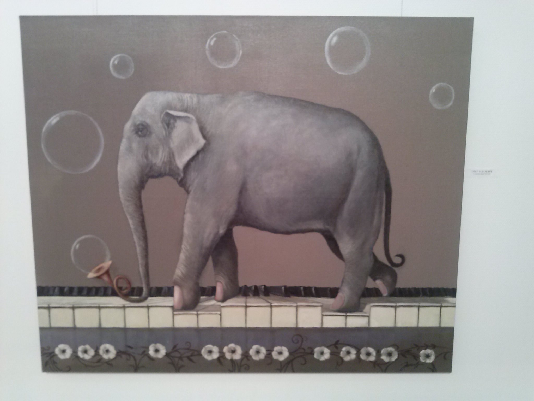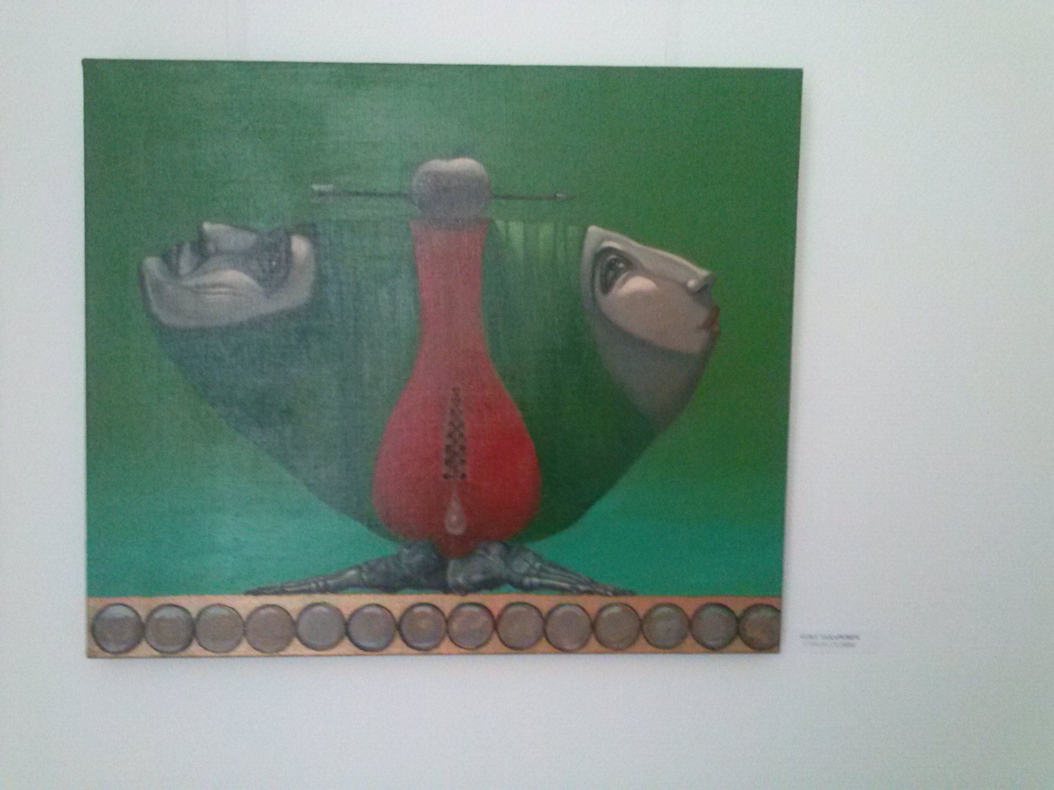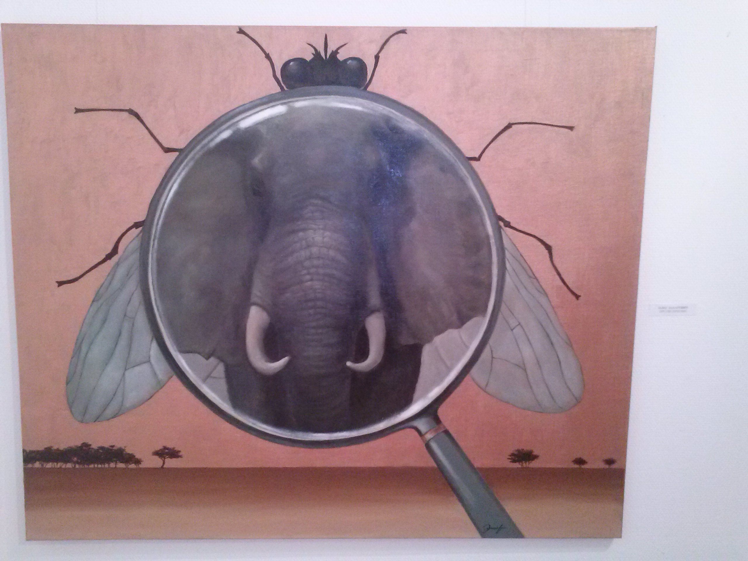 Олег Захаревич, куратор выставки, предложил интересные аллегории, часто используя игру слов в названии и игру символов на картине.